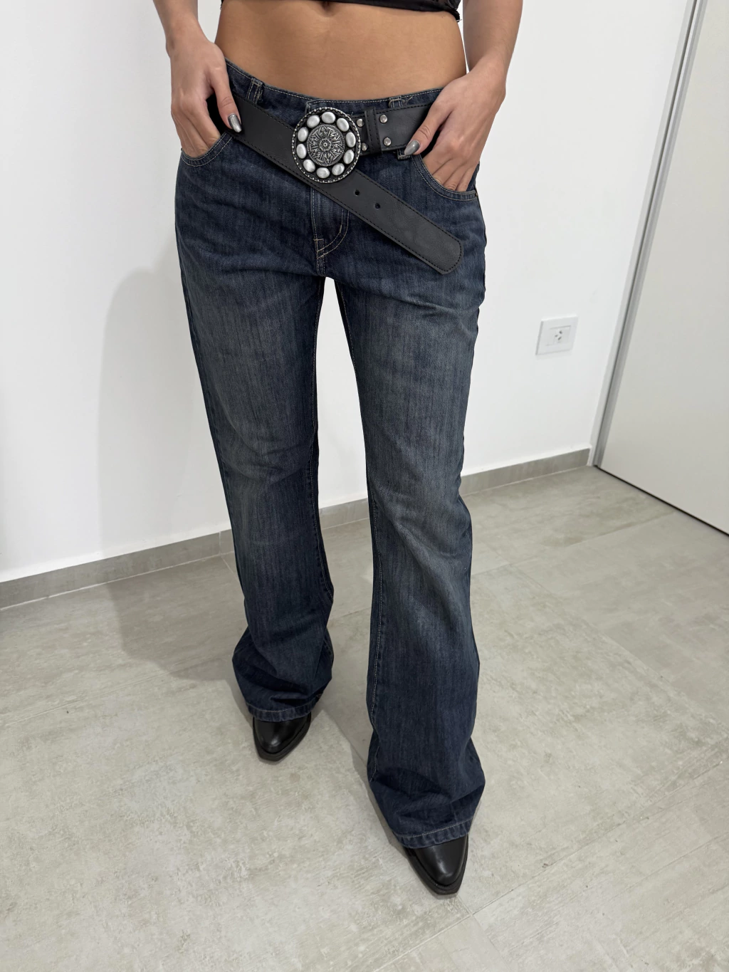 Denim Wide leg rígido, con tachas